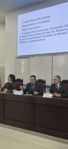 Astăzi, 26 februarie 2025, în contextul ”Zilelor Studentului FRIȘPA” studenții și cadrele didactice ale facultății au participat la o conferință excepțională ținută de Excelența Sa YAN Wenbin, Ambasadorul Republicii Populare Chineze în Republica Moldova. Tema discuției a vizat RELAȚIILE DINTRE REPUBLICA POPULARĂ CHINEZA ȘI REPUBLICA MOLDOVA LA ETAPA ACTUALĂ.